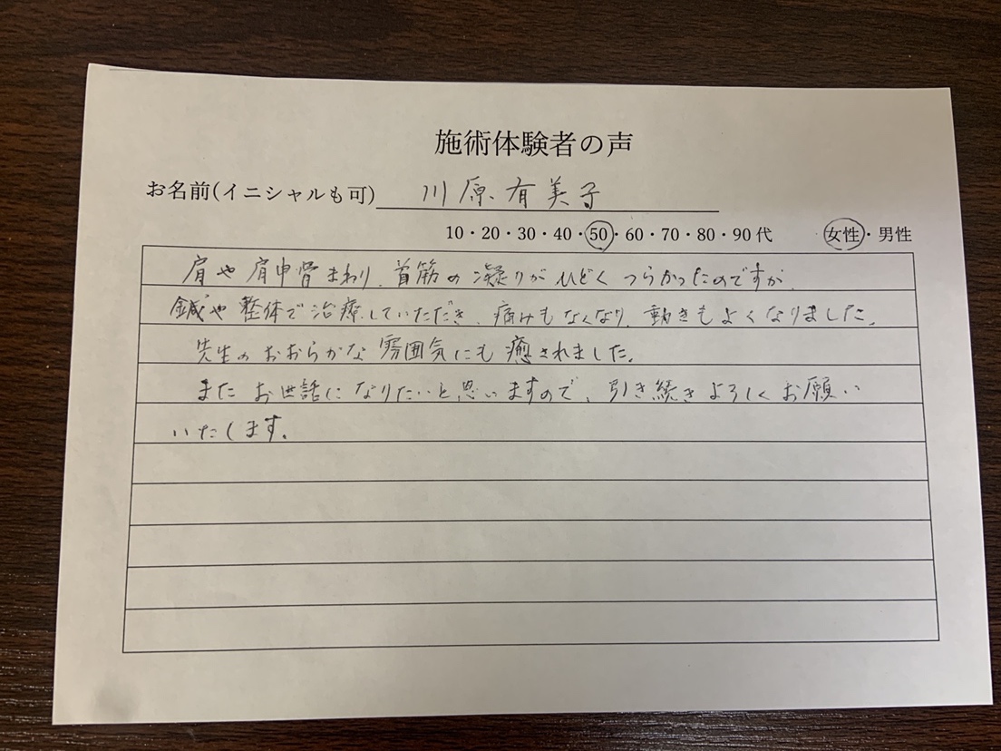 施術が終わりましたら、どのような変化が出てかを確認していきます。